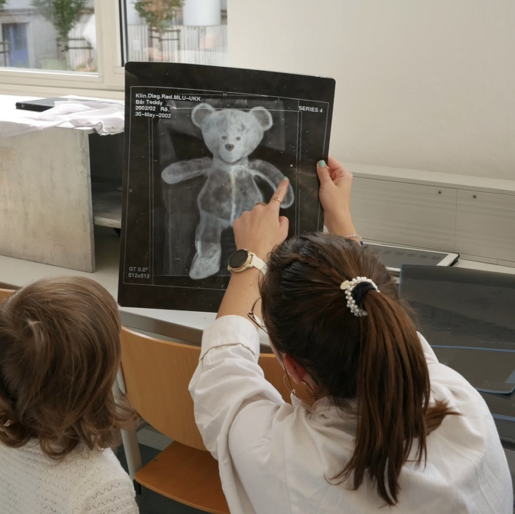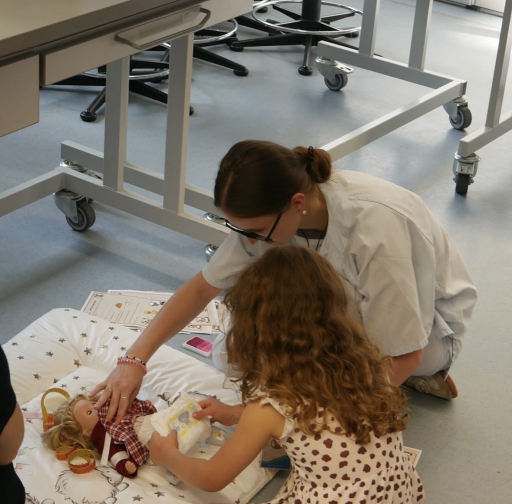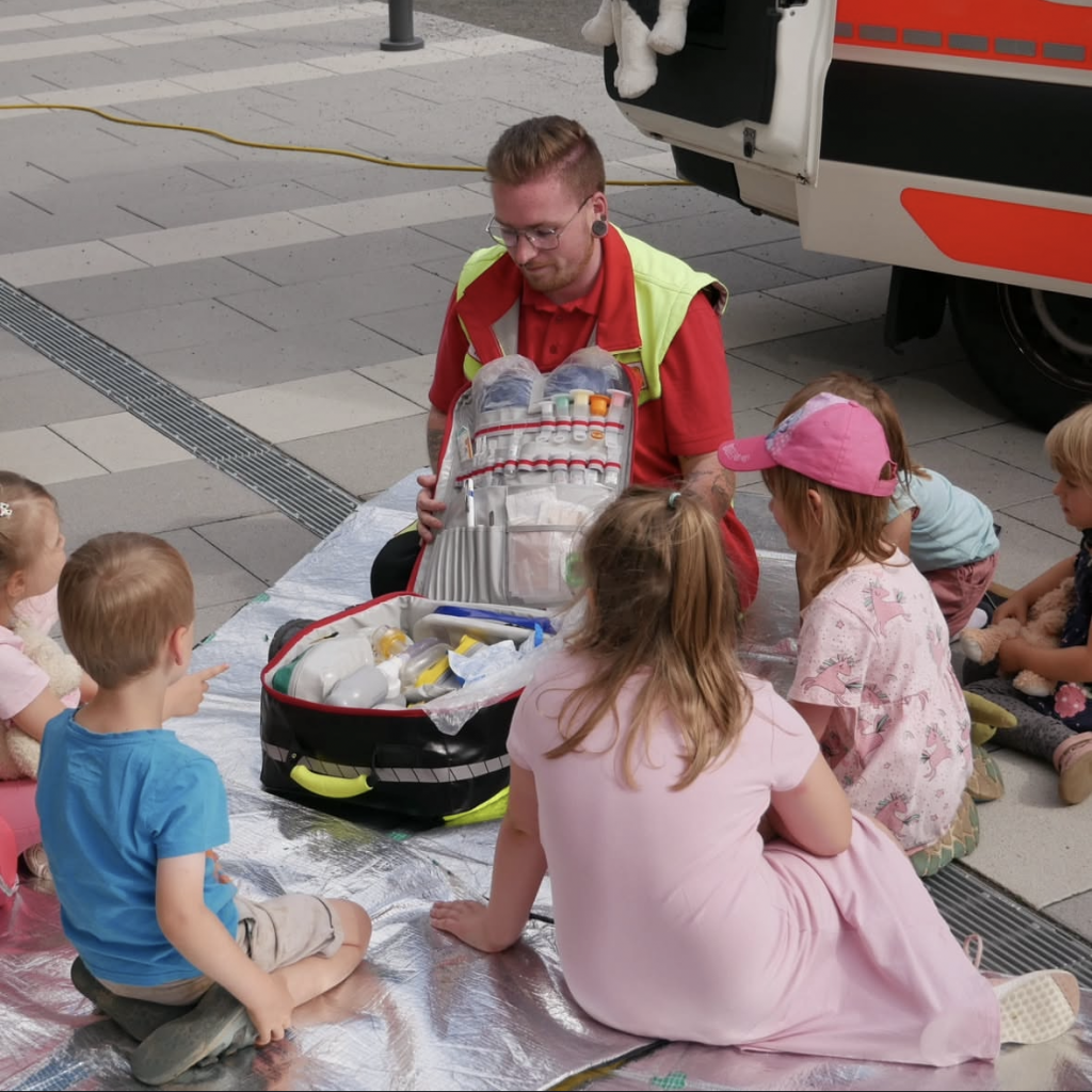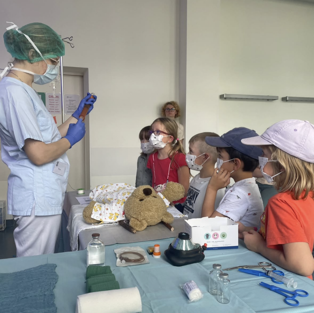 Ob das Holzhörrohr der Hebammen, die Beatmungsmaske aus dem OP oder die Liege im RTW: an unseren weiteren Stationen konnten die Kinder spielerisch ihr Wissen rund um die Medizin erweitern und neue Gegenstände erkunden.